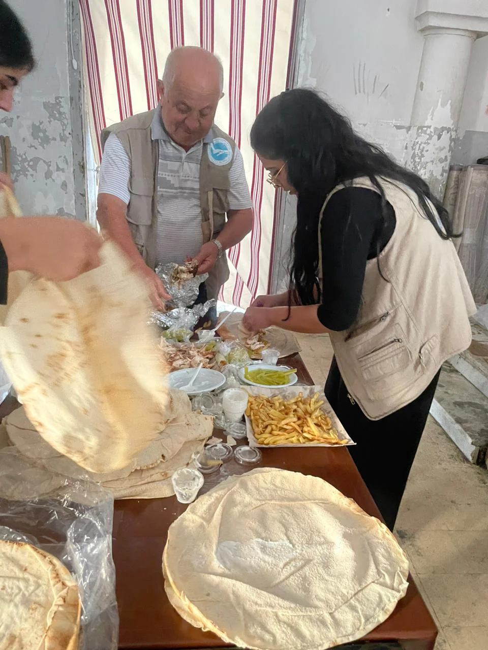 إن جمعية أعمالنا تقوم بتأمين الوجبات الساخنة ( الفطور والغداء والعشاء للنازحين في مركز قصر العدل القديم) ، و(الفطور والغداء للنازحين في مركز دار اليتيم العربي) ، و( الفطور والعشاء للنازحين في حسينية صيدا) ، بينما تؤمن وجبتا العشاء والغداء لهذين المركزين بالتعاون مع جمعيات أهلية محلية .